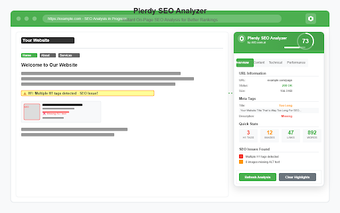 Plerdy SEO Analyzer is een krachtige Chrome-extensie die on-page SEO-audits in real-time uitvoert. Deze gratis tool biedt uitgebreide inzichten voor digitale marketeers, SEO-professionals en website-eigenaren om hun pagina's te optimaliseren voor betere zoekresultaten. Het analyseert diverse elementen zoals meta-tags, kopstructuur, afbeeldingsoptimalisatie en technische SEO-onderdelen, en biedt gerichte suggesties voor keywordplaatsing en leesbaarheid. Met functies zoals het volgen van Open Graph en Schema-markup, kunnen gebruikers ook hun sociale media-previews optimaliseren.